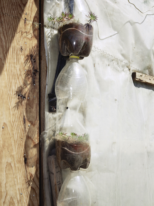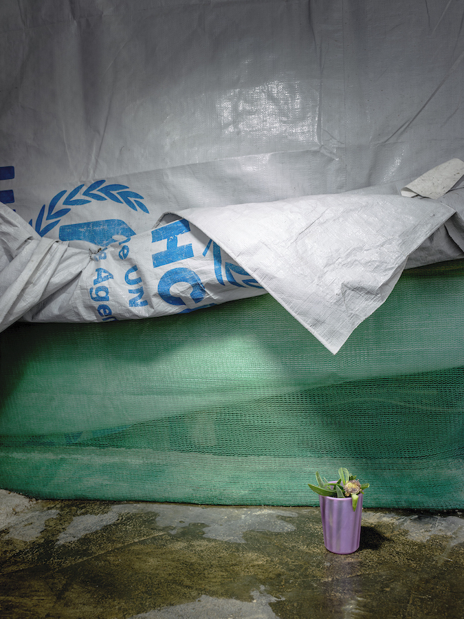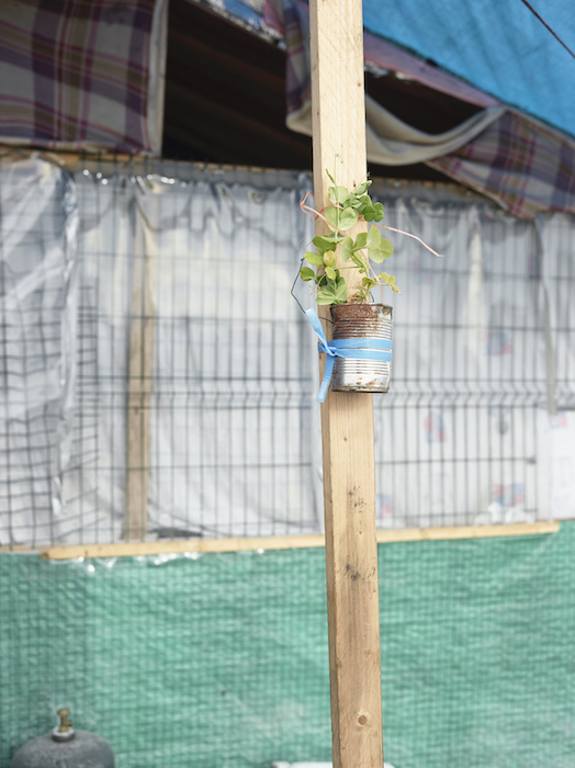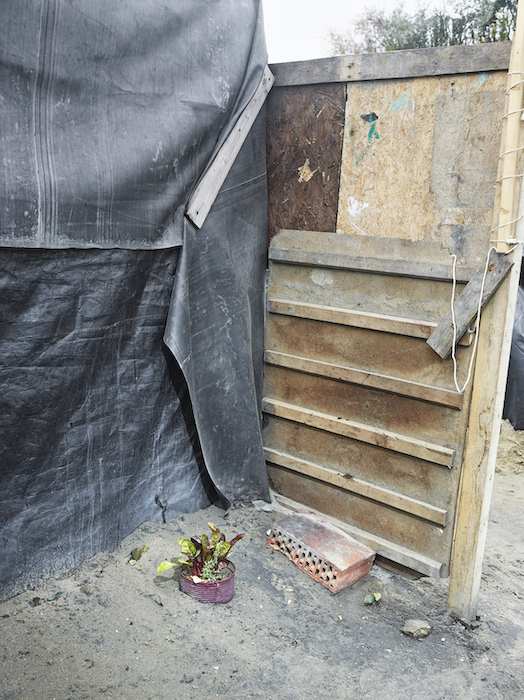 I was engaged in a reportage project in the earthquake-struck region of northern Pakistan in 2005 when I first noticed a newly planted micro-garden in a refugee camp. The sight of something so prosaic in such a chaotic situation was unexpected and moving. The existence of these tiny gardens changed my view of refugees: I began to see the residents as resilient survivors instead of as victims. It was with this outlook that in 2006 I began my study of refugee issues in Calais. It was not until 2015 that little gardens like these started to appear outside the makeshift huts and tents in the “Jungle”. The arrival of thousands of migrants in 2015 had provoked stringent security measures in Calais harbour. It became clear to the camp residents that their stay in the French seaport of Calais would last longer than they had planned. By planting little gardens in this unwelcoming setting, the migrants in the sand dunes seemed to be striving to reconcile themselves with the situation. They used plants to create a gentler, more domestic atmosphere. The impersonality of the unofficial camp was diminished and the camp dwellers literally began to put down roots in foreign soil.