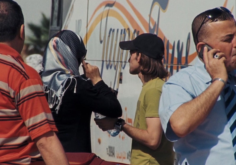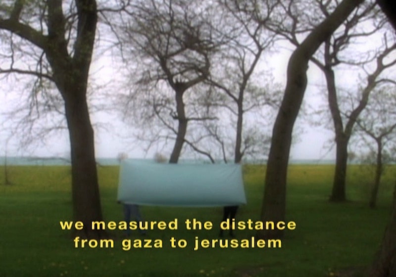 Right: Still from We Began By Measuring Distance (Basma Alsharif, 2009)