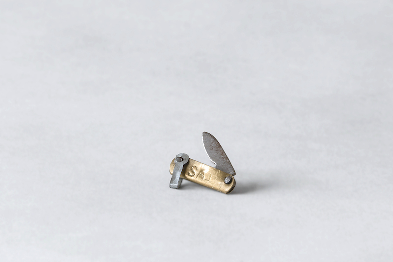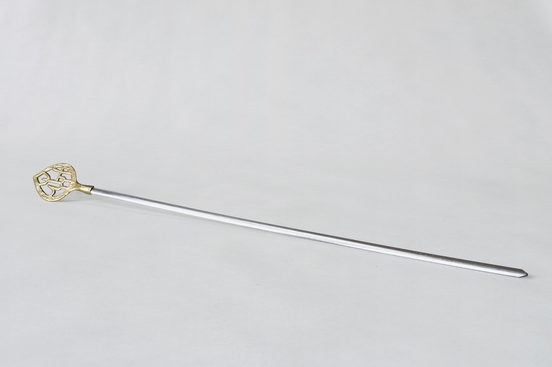 This miniature flagellation knife was acquired in the city of Ahmedabad, India, at the holy graveyard of the Dawoodi Bohras, a small but thriving Shi’i Muslim community. The knife is used during the annual commemoration of the martyrdom of Imam Hussayn, observed by Shi’i Muslims all over the world. It is commonly attached to a thread or a cord, which is then used to lash one’s back during mourning rituals. I bought it because of its odd miniature size since flagellation knives usually come in the size of a regular knife.