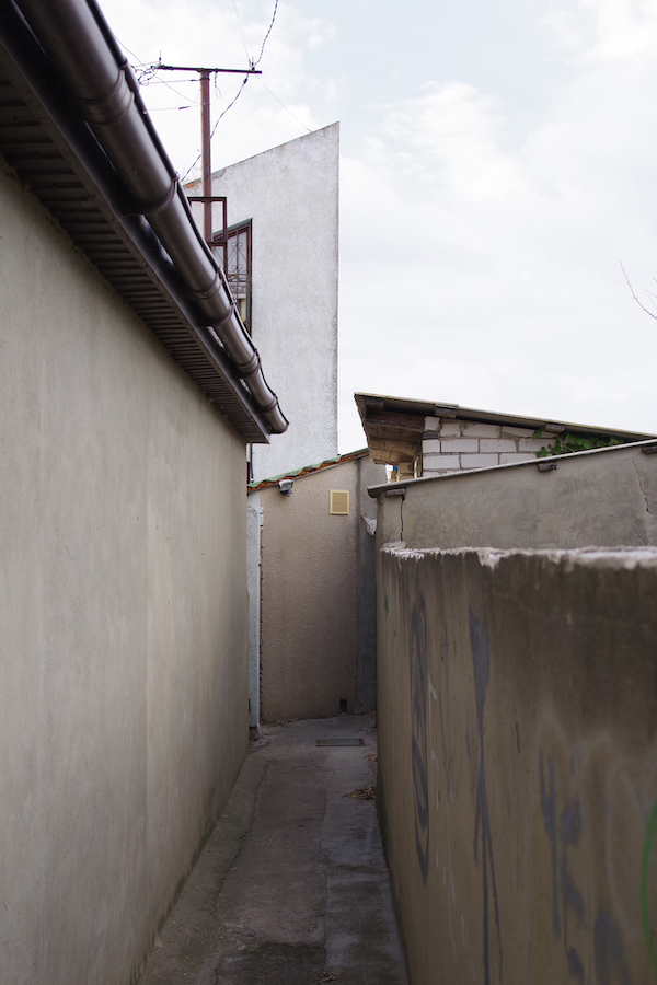 The area of main interest is the densely built and populated residential blocks spread unevenly throughout the Bugaz Spit. These particular blocks resemble many different places in the world. It is possible to encounter the vibe of the low-rise residential part of the Harajuku neighborhood in Tokyo while passing knots and webs of electrical wires, external stairs encircling the structures, clean plain facades, and utility pipes set outwards. Or feel the laid-back atmosphere around the handful of boathouses at Channel street in San Francisco due to the variety of colors, window shapes, and boats parked near the private piers. And, finally, to find yourself inside Venice’s corridor streets, wittily spotted by Giulia Foscari in Elements of Venice. Similar to her observations, narrow streets dividing the houses create the system of an external element that is essential to the place. Purely functional in use, these corridors are physical dividers of private properties and sometimes get as narrow as is possibly allowed. This solution saves scarce and valuable square meters. Site-specifically, these streets also lead you to the “grand finale” of the walking journey—to the sea or waters of the estuary.