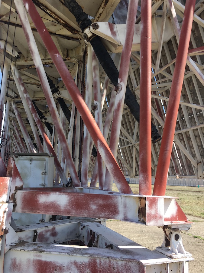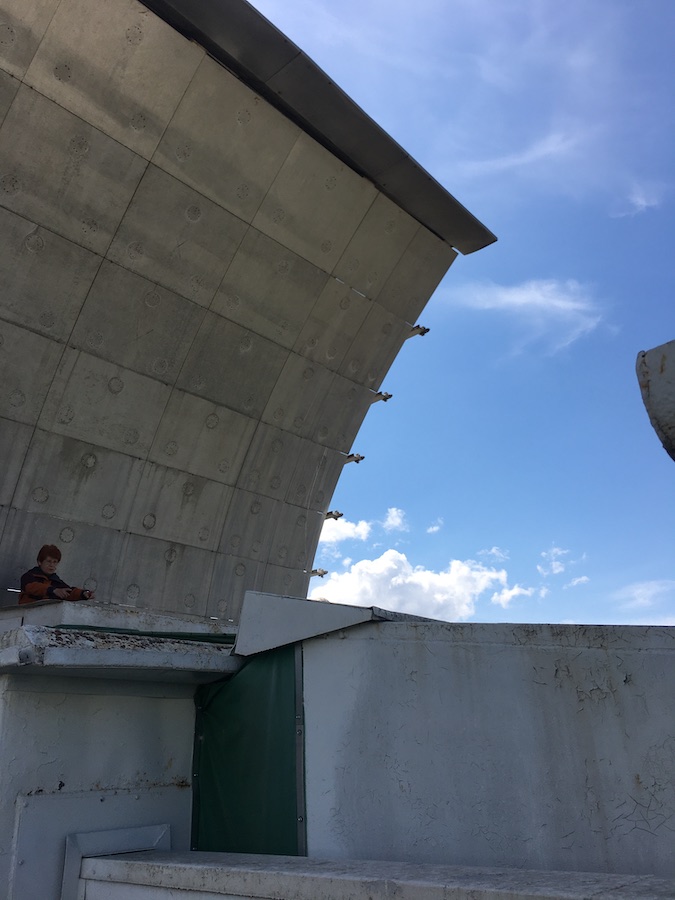 The porch of the office building where the radio telescope is located is covered with ivy. Together with the dazzling sun and an old motorcycle at its steps, the place resembles a sanatorium or a botanical garden. We enter the territory of the radio telescope itself—a large field with a 500-meter diameter surrounded by 895 rectangular reflective elements. Despite the grandeur of the structure and its unreal scale, we observe a calm life peacefully passing here. We climb to the roof of a mobile observation post, which moves across the field along rails, and step inside. “We knew you would come,” employees say and this phrase reminds one of an episode once read in some science fiction novel. The reason is actually rational: scientists receive data from the telescope in the radio wave range and can “see” the spectrum changing with living beings entering the territory. I cannot but feel I am on the distant planet of Solaris—in a couple of minutes the annihilator will start off, a light will flash, a weak wave will hit, and the phantom that we are observing right now will disappear.