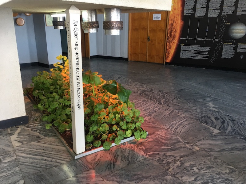 It is already 8 AM and we have been brought higher into the mountains along the smooth winding road and dazzling passes, where the Kuban begins its course. The air is getting frosty and the dome of a large azimuth telescope can now be seen. “It's very cold there,” our guide warns. The gate at the entrance to the remote complex is open and we enter the building where the telescope is located. A modest greenhouse attracts our attention with a Peace Pole—a monument that displays the message “May Peace Prevail on Earth.” As a part of the World Peace Prayer Society project, similar structures have been installed in more than 120 countries.