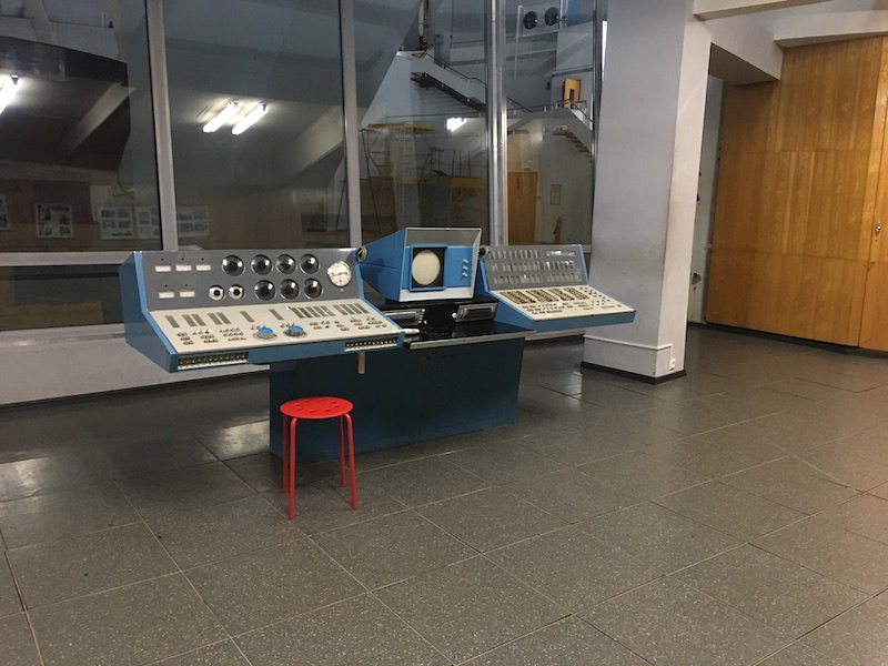 We climb the stairs a few flights up, closer to the stained-glass window. In the room with a glass panorama wall there is a control panel made in the 1960s—now it is an exhibit shown during excursions, but in the past it was regularly used during the observation of celestial bodies. A large-scale structure with a mechanism resembling both a pendulum and an hourglass can be seen behind the glass—the largest alt-azimuth optical telescope in Eurasia with a 6-meter diameter of its main mirror. This object has an incredible story: the complex technological item was invented by Soviet optician Dmitry Maksutov in Leningrad during the war. Its weight was initially about seventy tons, in the process of its manufacturing it took 714 days to cool it down, after which the surface of the mirror was treated with special diamond polishing pads for six years. The parabolic shape, designed with immense precision, collects the rays of light and thus enhances the image of an object to a degree about 1 million times more sensitive than that of the human eye.