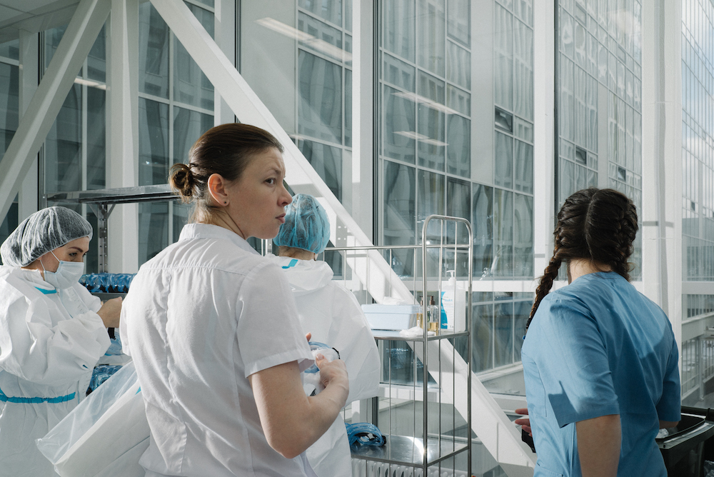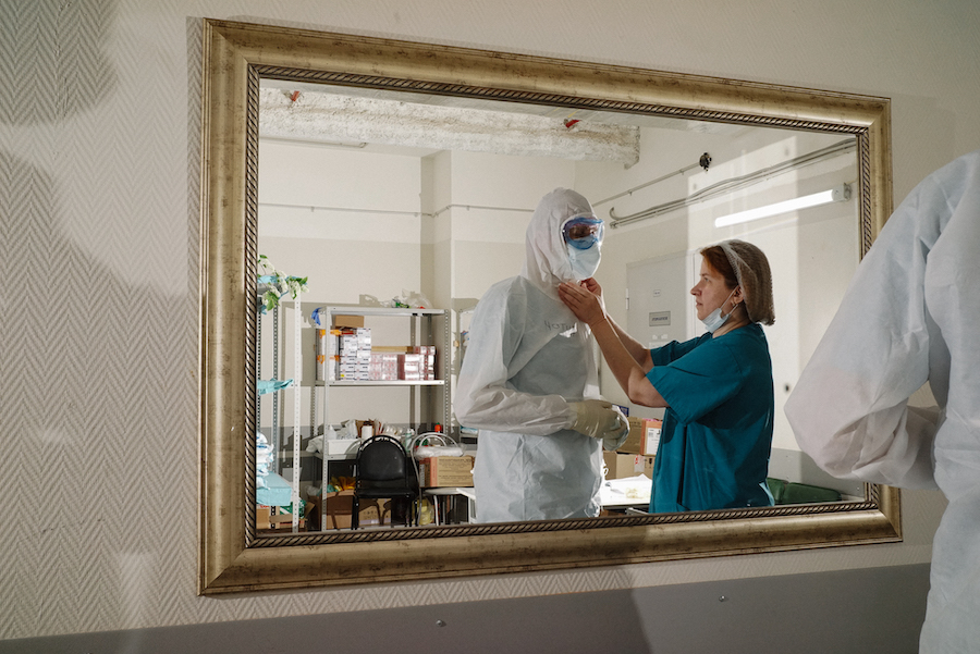 This publication features works by photography artist Margo Ovcharenko. For one month, she documented life under the self-isolation regime in Moscow and the work of people exposed to COVID-19 on an everyday basis. We are publishing selected fragments of her project.