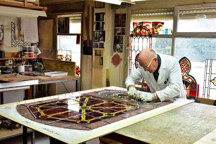 Right: Glass Artist Alberto Francisco Chueca Lenzano. Navarra