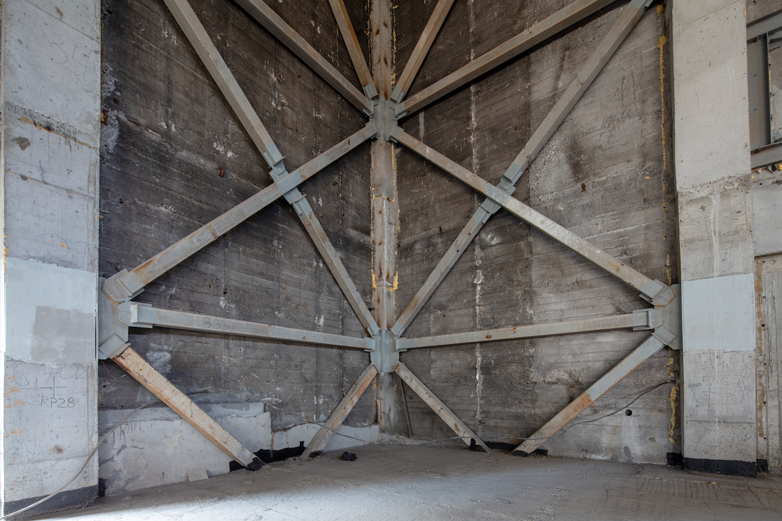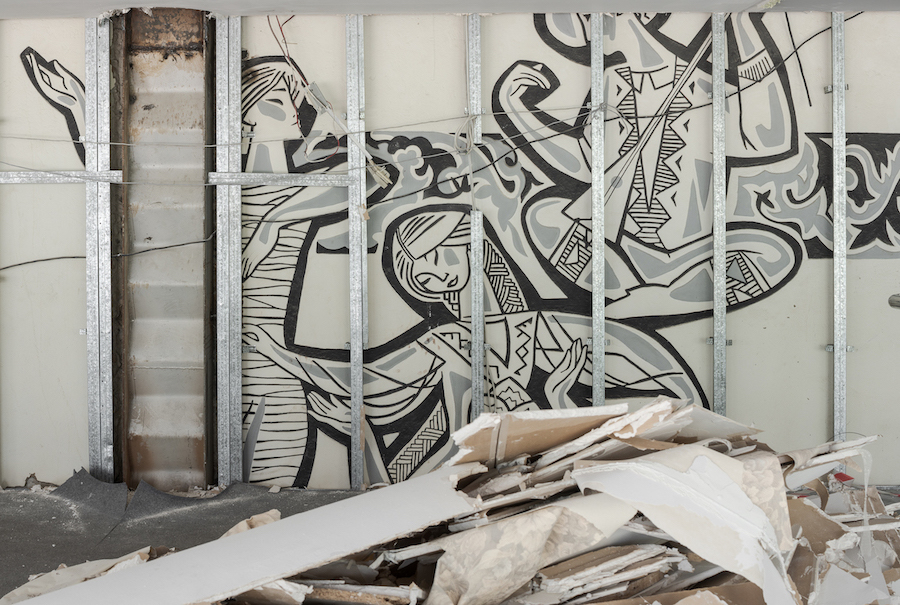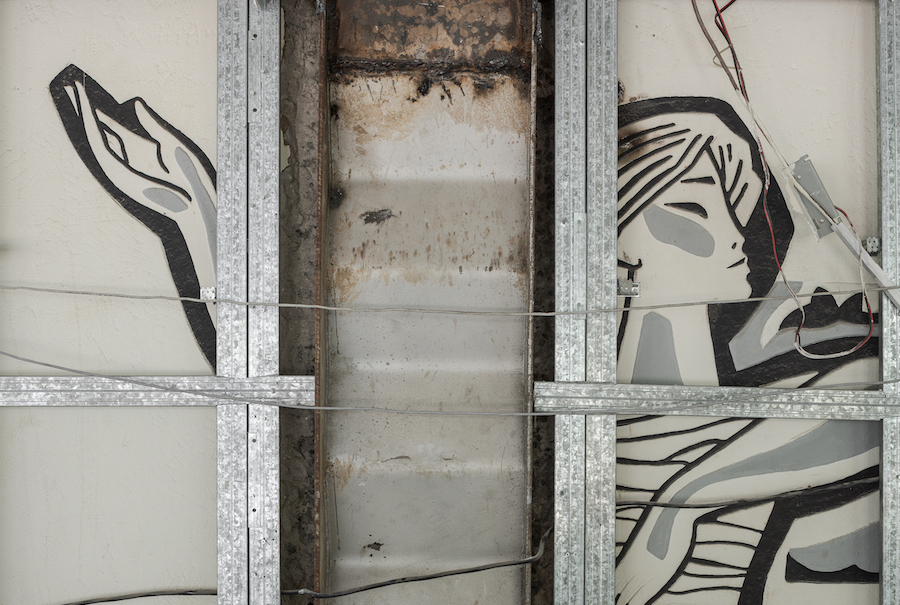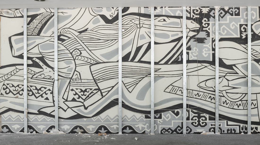 As noted, during the renovation, it was determined that Tselinny’s foundation had to be redone in order to comply with contemporary building regulations. Laying a new foundation meant disassembling Tselinny, including the concrete wall with the sgraffito. And the only way to disassemble the wall without destroying the monumental artwork was to cut the wall into pieces. As a result, when Tselinny re-opens, visitors will encounter a fragmented version of the sgraffito, whose complexion will clarify that the work has always been a montage.