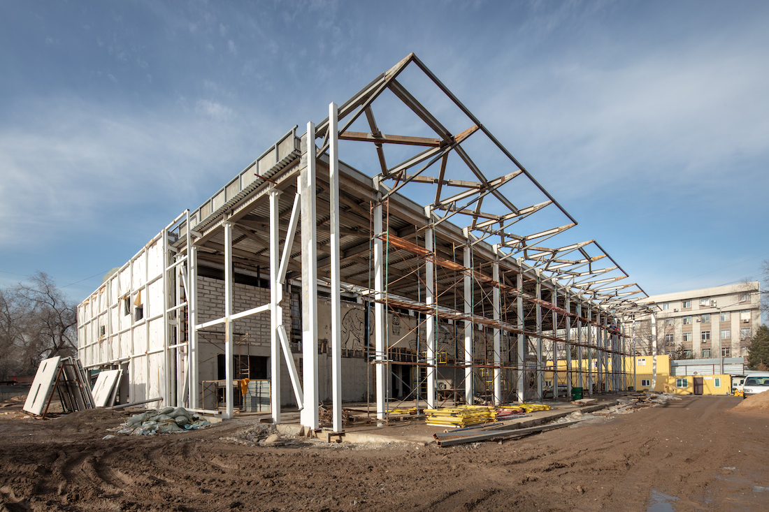Notably, Tselinny’s cultural archaeology has extended beyond the construction site. As drywall was being removed, Tselinny initiated a range of interdisciplinary projects that have functioned as intellectual scaffolding throughout the protracted renovation. This includes a guide to Soviet modernist architecture in Almaty, published by the Garage Museum with Tselinny’s support. Released in 2020, the book has helped renew local interest in the architectural style, heralding a modest modernist revival.