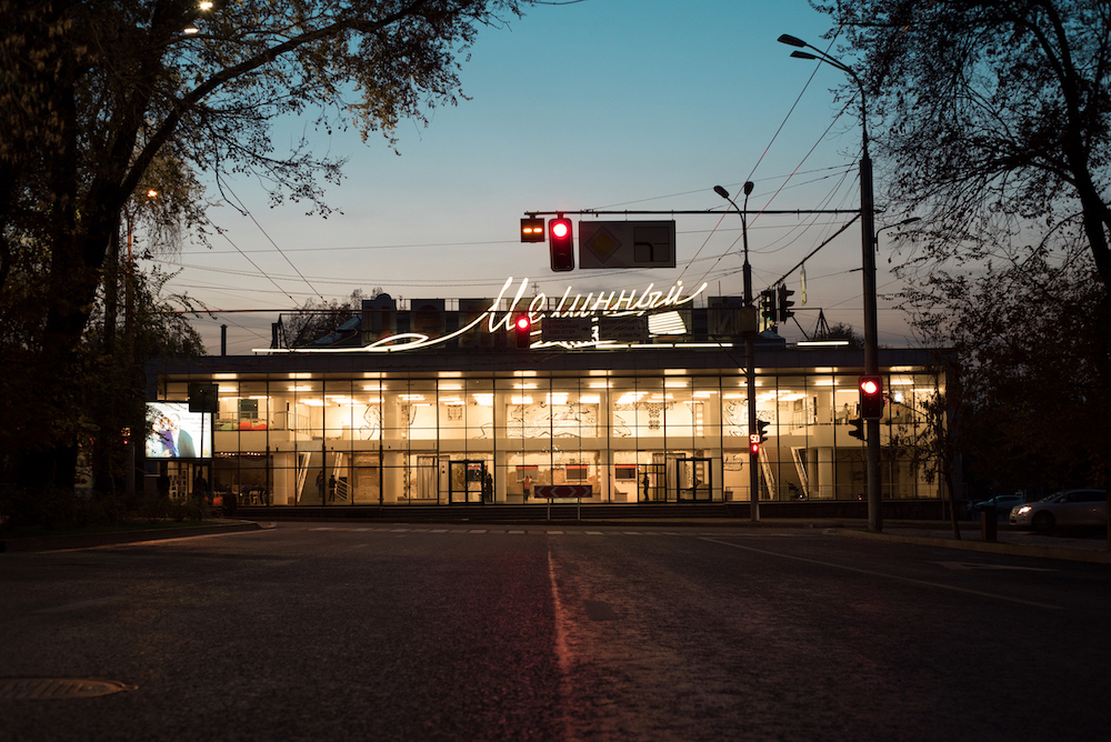 Soviet monumental art was an art for mass enlightenment. While not without its merits, it was highly codified and left limited room for the imagination—Sidorkin’s sgraffito included. With this in mind, it is worth dwelling on what the window molded on an element in the monumental artwork portends for the center. During the day at the renovated Tselinny, a portal derived from the art for enlightenment will let light in. After sundown, it will let light out. The multiplicity and multi-directionality inherent to that process can be expected to have an ordering effect on Tselinny, whose sights and narratives will be seen in many lights.