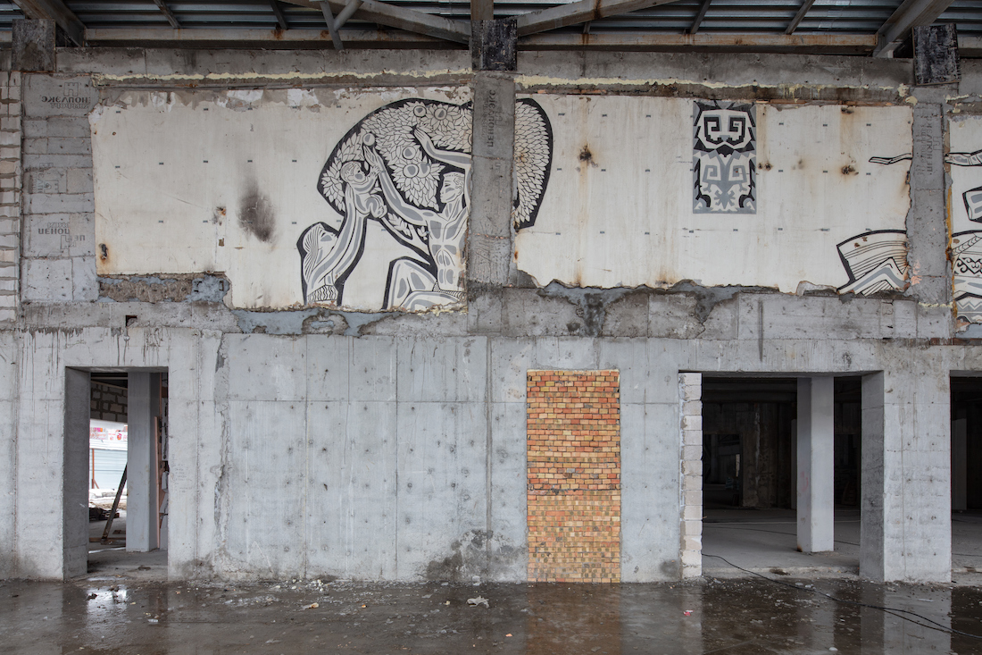 Tselina is but one of many specters that inhabit Tselinny. The presence of these specters is the source of Tselinny’s strength and weakness. Khan’s recognition of this dialectic has structured his renovation approach, including his engagement with Sidorkin’s sgraffito.