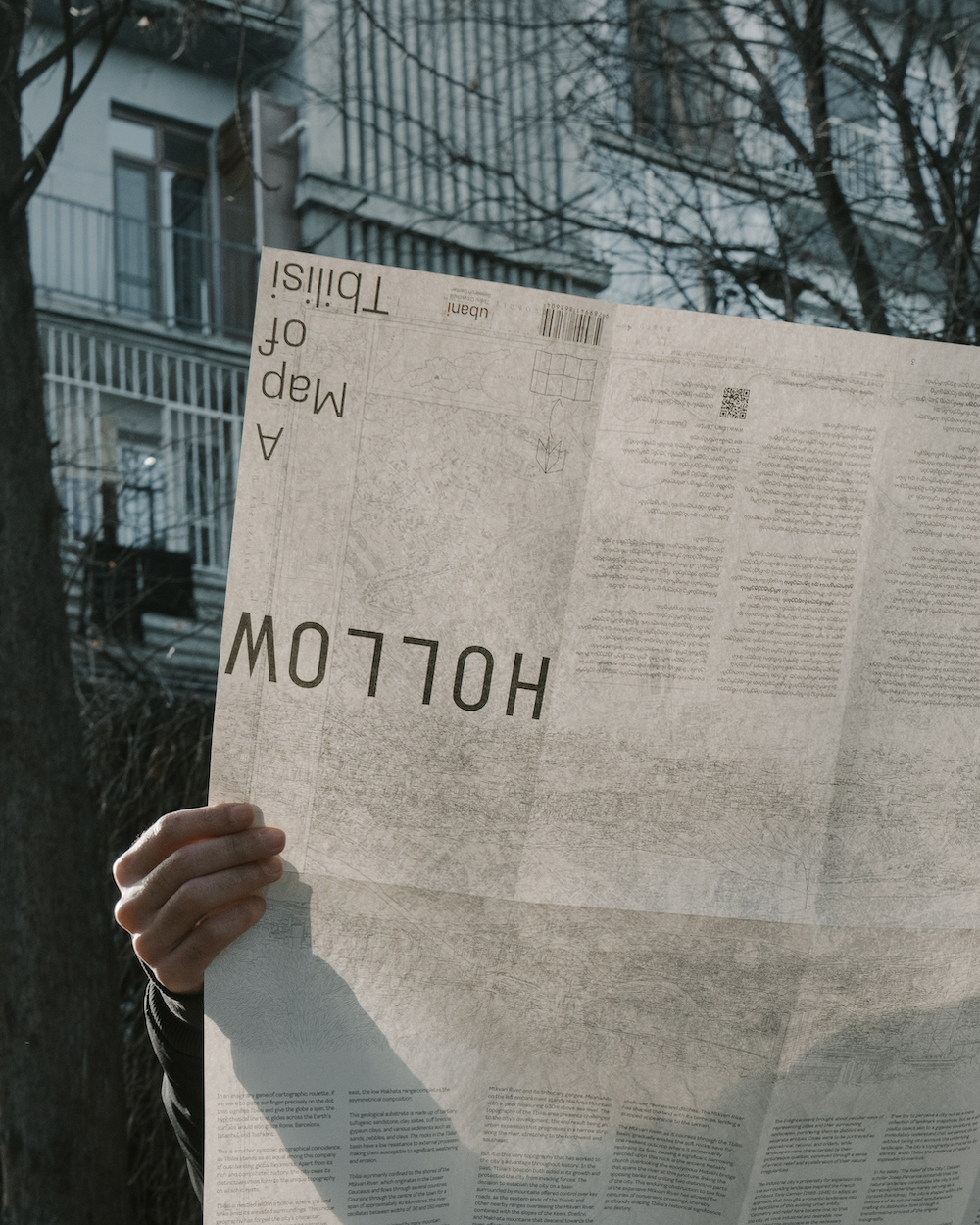 Ubani—Tbilisi Cityscape Research Centre was recently established in Tbilisi, Georgia by a collective of architects, art historians, and cultural managers. Its mission is to curate a comprehensive repository of knowledge dedicated to the cityscape of Tbilisi, delving into the intricate fabric of the city’s landscape, architecture, and urban development. The Ubani team has created and released a map of Tbilisi, portraying the city’s layout against a carefully rendered landscape. “Hollow: A Map of Tbilisi” merges two rarely combined cartographic codes: detailed topological phenomena and a concise schwarzplanschwarzplan A two-dimensional map of an urban space that shows the relationship between built and unbuilt space. Below is an exclusive online publication for EastEast: an essay from the authors at Ubani that accompanies their unique map of Tbilisi.