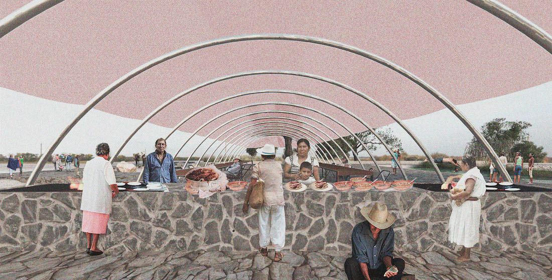 Pooling Xolox will be a water basin that acts as a community space and a collection area for water run-off created from the construction of a cancelled Mexico City airport. It is planned for the town of San Lucas Xolox, where water runoff from construction-created divets in the land have led to the flooding of infrastructure for the locals. Instead of rerouting the water beyond the town's limit, Taller Capital hopes to divert and collect the water into a basin created by the earth, which also acts as community space where excess water might be used for agricultural purposes.