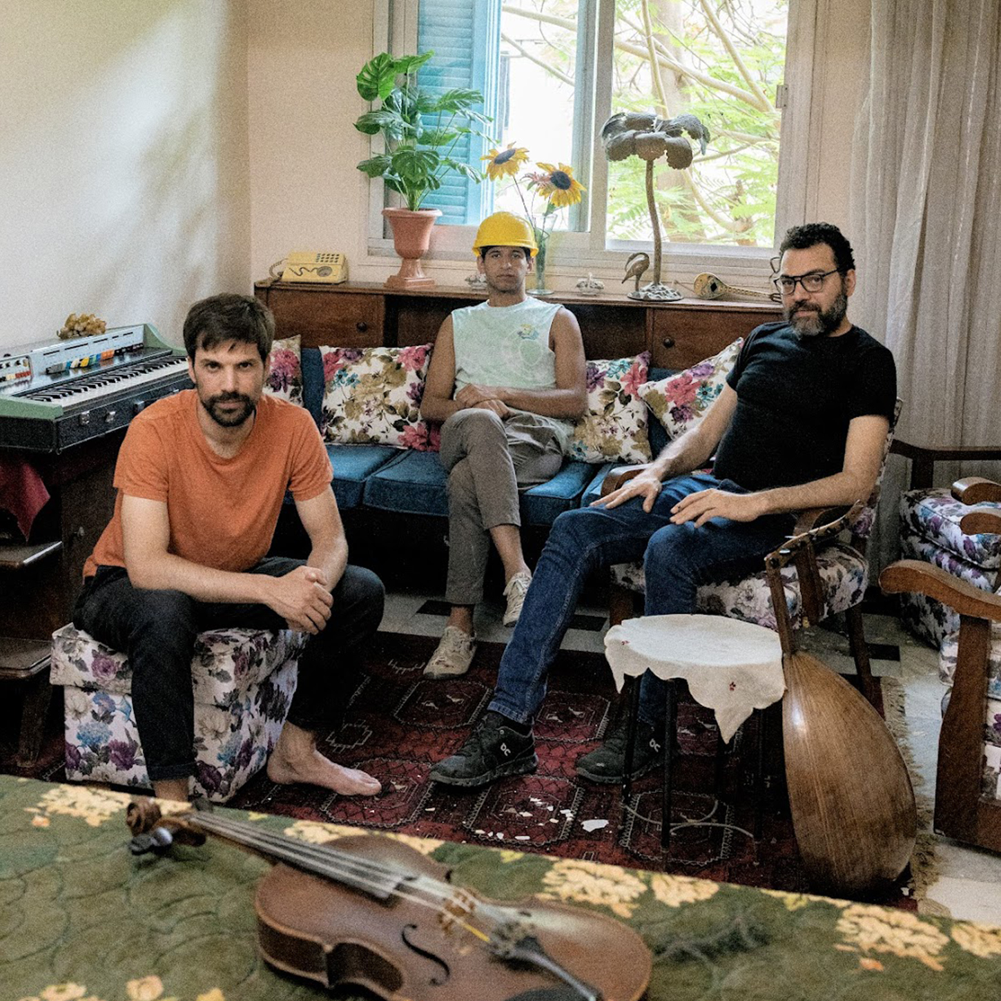 The Farfisa Farfisa An Italian electric organ popular in the 1960swould become an implemental component of the Gouda Bar sound, imbuing it with the nostalgic cabaret pop of the Egyptian past. “I had an image of the soundscape. I needed the synthesizer [to be played] by Jonas . . . but I also wanted Soheib Elnaggar to play the Farfisa like Magdy El Husseiny and Hany Mehanna from the ‘60s and ‘70s, in a heavy percussive way.” He brought in the violin and trumpet to further mimic the takht, or Arabic backing band. The trumpet especially drives home the old-school chaabi sound, reminiscent of Ahmed Adaweya’s work with trumpeter Sami El Bably.