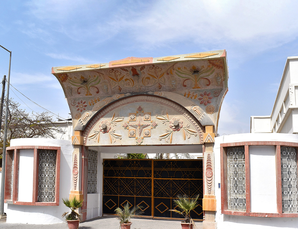 Right: Zaman House, original decoration of the main gate, completed c. 1964.