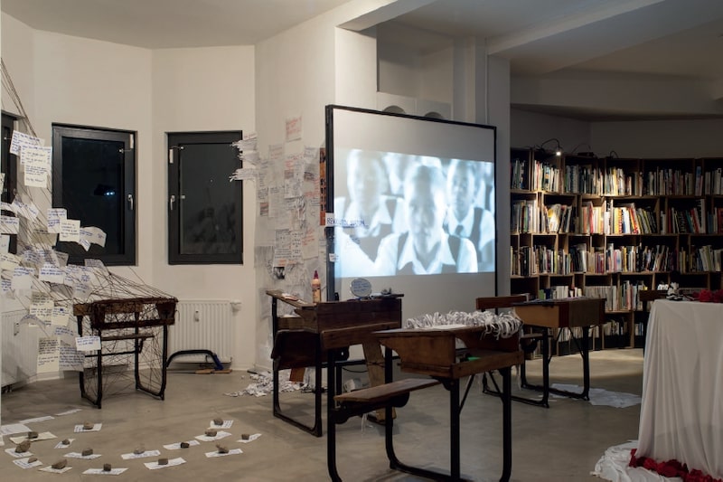 Right: iQhiya. Monday. Installation view of That, Around Which the Universe Revolves: On Rhythmanalysis of Memory, Times, Bodies.