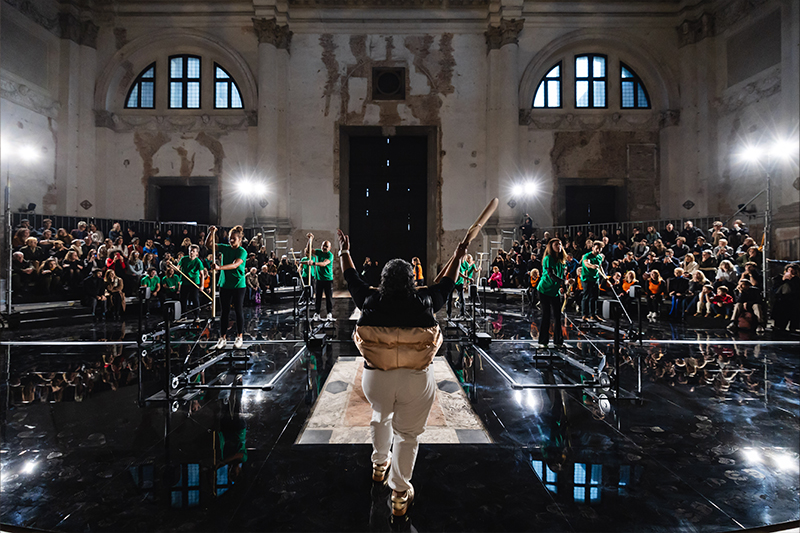 Ocean Space allowed us to demonstrate that artists should be central to knowledge creation and policy-making processes. Venice, historically reflective through art, symbolized the frontline of climate change with its sea level rise. We aimed to rekindle a relationship with the lagoon, fostering care as a cultural practice. Our first exhibition featured Joan Jonas’s Moving Off the Land II, where visitors encountered whale sounds filling the space. In 2020, during the pandemic, three traditional Venetian singers closed our program, their acapella performance highlighting the space’s historical—and acoustic—significance.