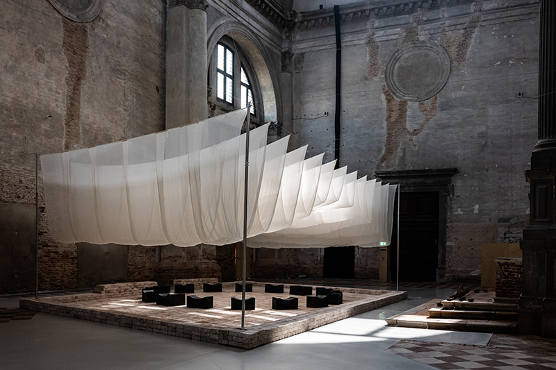 In 2013, we first imagined Ocean Space at the Chiesa di San Lorenzo, then still the Mexican Pavilion. A work by Mexican artist Ariel Guzik filled the space with incredible whale sounds and floating sculptures. The space, despite its deteriorated condition, revealed itself to be acoustically potent, originally built as a choir’s music box. In 2015, after the Mexican Ministry of Culture vacated, Francesca, and I embarked on transforming it into a cultural space integral to the Venetian scene, aligning with our belief that art and culture can drive environmental and societal transformation.