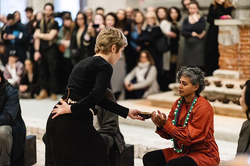 Elisapeta Hinemoa Heta, “The Body of Wainuiātea,” 2024. Cerimonial performance part of the exhibition “Re-Stor(y)ing Oceania,” Ocean Space, Venice. Co-commissioned by TBA21–Academy and Artspace, and produced in partnership with OGR Torino.
