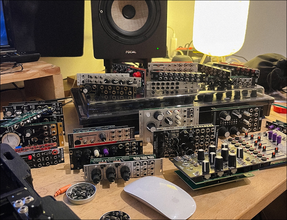 When I was watching synth videos on youtube, I would sometimes see these huge machines with wires and I was always thinking “What the hell is that? How does it work ?” I was fascinated by these machines. I realized that the only limit to a modular synth is the one fixed by your imagination. Compared to a regular synth, guitar pedal, or drum machine, all of which are fixed in their electronic design, the modular has an open architecture. This is what made me pull the trigger.