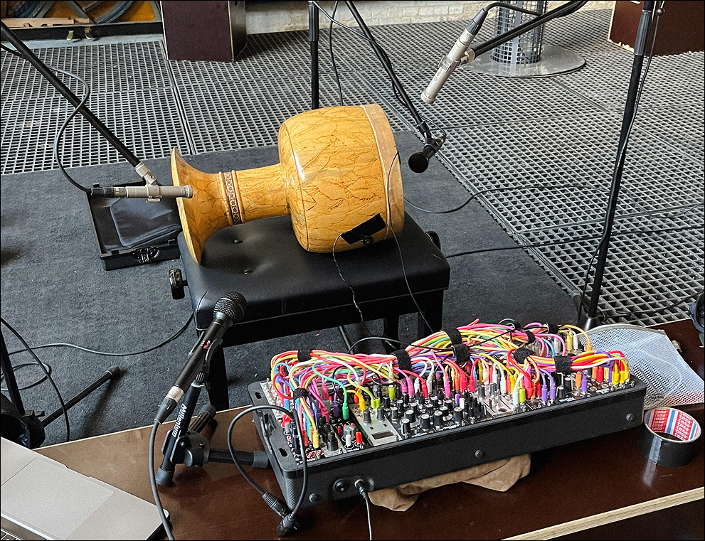 My modular case is built around these 3 ideas: transforming the sound of the tombak in real-time, using the sound of the tombak to trigger musical elements from the synth, and being able to improvise a full set (45-60 min) with all the tools at my disposal. When I’m designing a patch, I’m always looking to fulfill these three ideas. I’m looking to create a symbiosis between the tombak and the synth in order to play beautiful music.