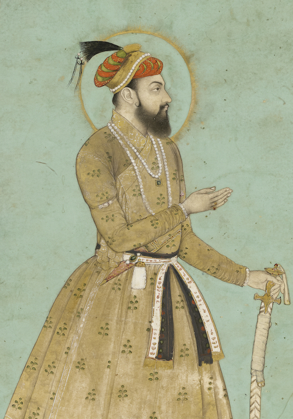 В Могольской Индии нимбы впервые появились в произведениях искусства, созданных при дворе падишаха Акбара: именно тогда произошел расцвет могольской книжной культуры. Центром производства иллюминированных рукописей стали китабхане — библиотеки, в которых мастерамастераНаккаш, или мусаввир, — название художника или каллиграфа. Точно так же Наккаш, или Мусаввир, — наименование Аллаха в персидской культуре. работали над изготовлением манускриптов и хранили их. Только в библиотеке самого Акбара насчитывалось около 24 000 томов. Известны многие художники, творившие при дворе падишаха: иранцы, индийцы, выходцы из Центральной Азии. Сплавив художественные традиции многих народов, они создали неповторимый стиль могольской миниатюры, и портрета в частности.