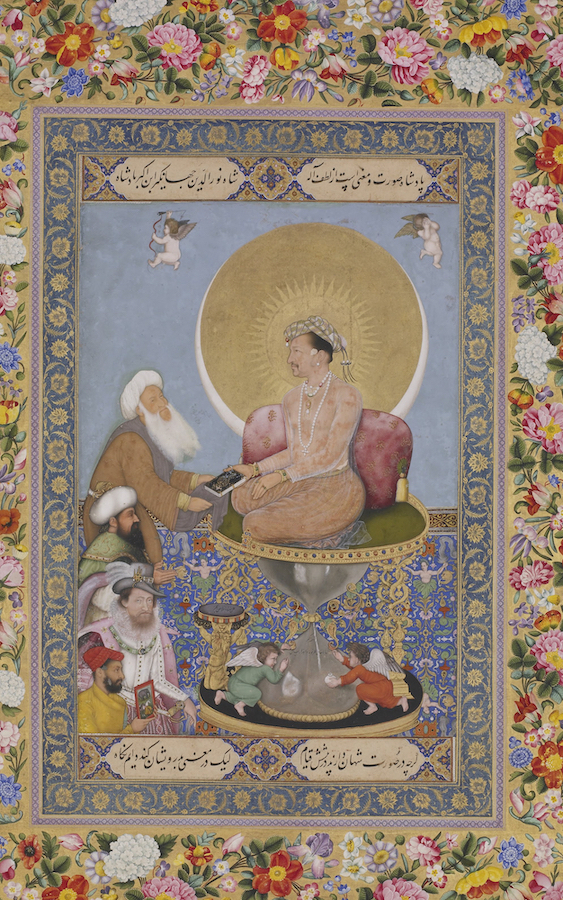 Первые изображения падишахов, окруженные золотым нимбом, появились именно при Акбаре, а ритуал поклонения императору назывался «даршан» (от санскр. «наблюдение святого или божества»). Таким образом распространялась идея о богоблагословенности правителя. Вскоре нимб стал элементом, также выделяющим и святых: он сочетался с привычным для мусульман понятием божественной благодати — «барака». Книжная могольская миниатюра — один из основных жанров художественного высказывания, где встречаются антропоморфные изображения и, соответственно, нимбы. Но ее сложно назвать в чистом виде мусульманской: Акбар создал синкретическую религию, вобравшую в себя основные положения ислама, индуизма, зороастризма и христианства, — дин-и иллахи («божественная вера»). Доктрина эта, правда, ненадолго пережила своего создателя: последующие падишахи были мусульманами и распространяли как ислам, так и мусульманское искусство по всей Могольской Индии.