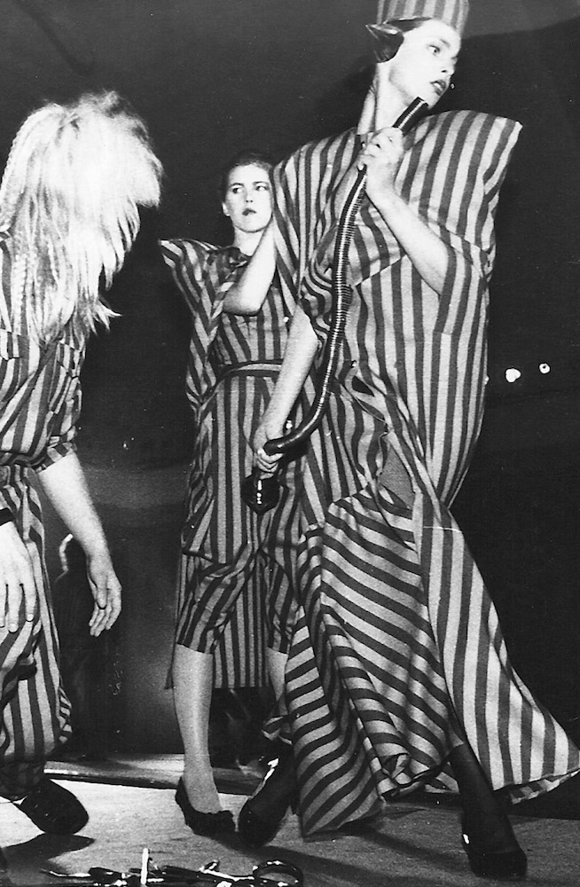 ББ:Мы выступили в Риге, а затем путешествовали по странам Балтии. Вскоре Раиса Горбачева пригласила нас в Большой зал Кремлевского Дворца в Москве. Кажется, это было в 1988-м году на презентации первого номера «Журнала мод». Среди гостей были члены официальных модных домов, но наш показ был единственным из альтернативных. Странное было время. Мы считали себя героями, праздновали победу нашего взгляда на мир. Через несколько месяцев Артемий Троицкий пригласил меня на презентацию книги «Назад в СССР» в Рим, потом в Венецию. В рамках презентации книги был организован фестиваль советского авангарда, в котором приняли участие многие художники андеграунда, в том числе Петр Мамонов и Катя Филиппова.