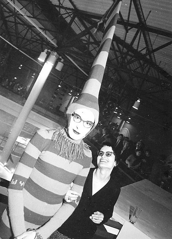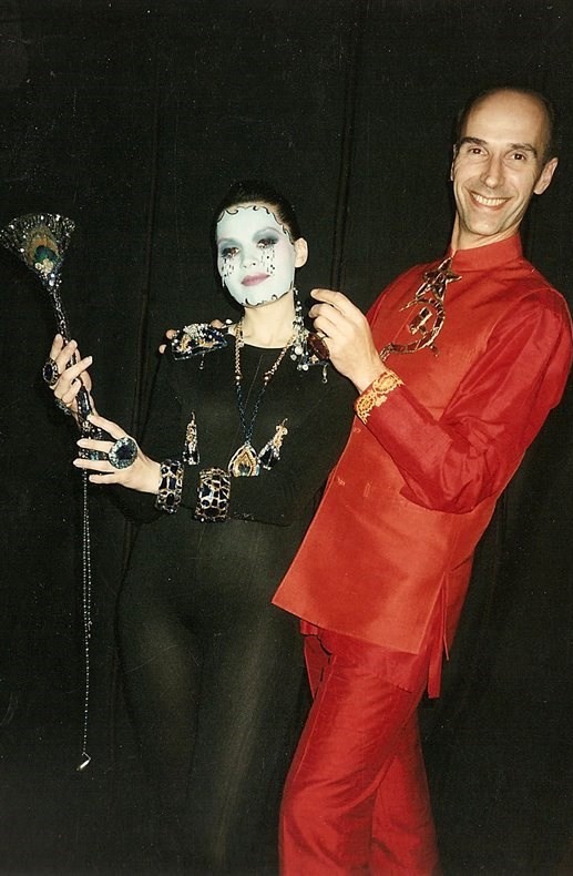 Слева: Алвис Херманис и Эндрю Логан, 1990 год Справа: Сандра Страукайте и Эндрю Логан на «Ассамблее неукрощенной моды», 1990 год