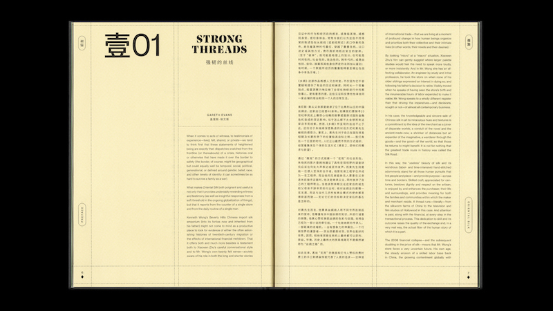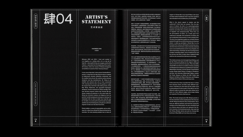 Китайский читатель знает, что название 乡绸 (сян чоу), которое переводится как «шелк из (родного) города», произносится так же, как и выражение 乡愁, означающее ностальгию, тоску по дому. Для меня работа с шелком и его непреходящая красота воплощают собой дело, которым человек занимался на протяжении поколений и которое вопреки времени и поверх государственных границ связывает между собой людей и места. Это особенно актуально в нашей теперешней ситуации физической изоляции и дистанции. Полагаясь на продуманную и детальную документацию истории, рассказанной владельцем магазина Кеннетом Вонгом, в своей работе я пытаюсь увязать друг с другом движущиеся изображения и текст, цвета и текстуры, воспоминания и трактовки. И вдохновляюсь личной историей, рассказанной чувствами, а не фактографической сводкой. Таким образом, «Восточный шелк» не только излагает последовательность событий из жизни китайско-американского эмигранта (отца Кеннета), который рисковал собой на европейском фронте Второй мировой войны, но вернулся в Америку и стал успешным предпринимателем в Лос-Анджелесе. Книга также рассматривает микроисторию под макролинзой, чтобы через наследие и испытания одной семьи увидеть, как культурные традиции, существующие поверх границ, определяют связь между поколениями.