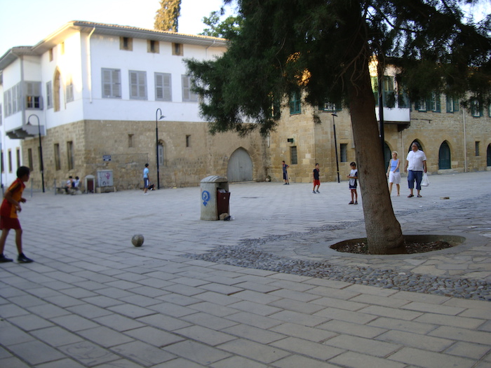 Покинув это оживленное место, я подхожу к мечети Селимие. Ее широкий двор, в котором нашли прибежище несколько деревьев, позволяет звуку циркулировать, что придает окружающему ландшафту ощущение открытости. В нескольких метрах отсюда на площади играют дети. Крики, звуки игр и беготни — постоянные спутники этого места. В какой-то момент слышен колокольный звон из церкви в другой части города. Затем я снова оказываюсь в тихом пространстве (мимо проезжает только несколько машин) — неподалеку от места, где заканчиваются городские стены Северной Никосии. Направляясь обратно к пропускному пункту, прохожу мимо крытого рынка. Окружение здесь звучит иначе: это спокойное, закрытое пространство, в котором перемещаются покупатели и торговцы, приобретающие и продающие овощи и прочие продукты. Звуки поднимаются к верху здания и возвращаются. Здесь можно заметить туристов, идущих обратно к границе, и магазины, акустически заявляющие о своем присутствии, — звуковая жизнь этого места напоминает о торговле.
