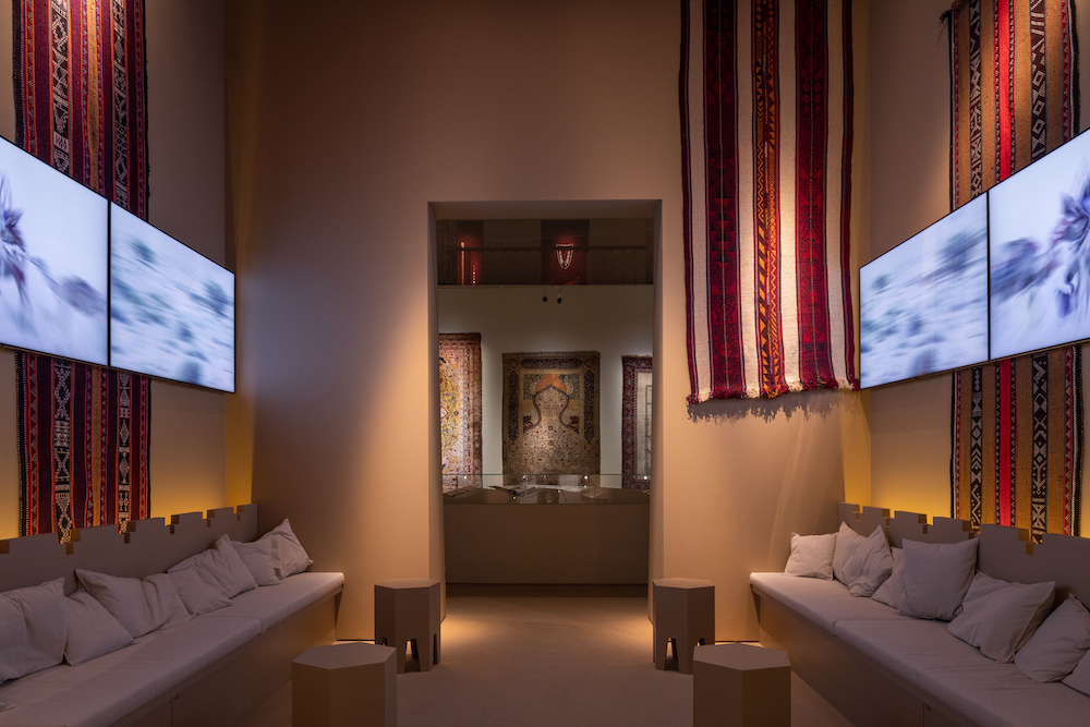 Возможно, ответ вновь кроется в двояком значении маджлиса: сделав круг и вернувшись к его пониманию как пространства гостеприимства, мы также узнаем, что в палатке арабской гостиной традиционно выступают хакавати (hakawati) — это слово, обозначающее рассказчика, происходит от арабского hikaya (история) и hakay (говорить). Принцип повествования хакавати — прерывающегося на полпути, чтобы перейти к другой истории, внутри которой, как в сказочном сундуке, может скрываться еще одна история, а слово передается другому рассказчику, и так до бесконечности, — кажется, является еще одним организующим принципом музея.