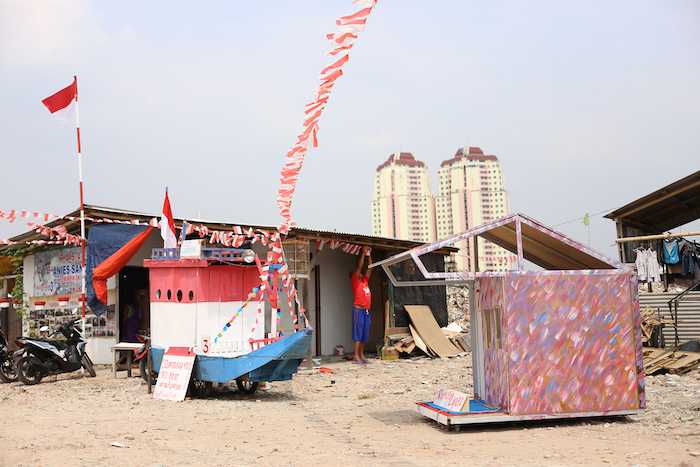 Один из моих главных проектов в Джакарте также связан с понятием дома: он называется The Ideal Home Contest. Вследствие особенностей городского развития в Джакарте множество районов, похожих на маленькие деревни в черте города. На индонезийском языке их называют кампонгами — это типичное явление в городах Юго-Восточной Азии, которое, однако, уничтожается градостроительными процессами, инициированными государством. В 2016 году я встретился с жителями кампонга Акуариум — меня пригласили туда друзья. Когда Индонезия была оккупирована Нидерландами, голландские компании построили в северной Джакарте множество зданий, одно из которых впоследствии дало название кампонгу. Позднее Индонезию оккупировала Япония, а после обретения Индонезией независимости в 1945 году многие сельские жители стали активно переселяться в Джакарту и занимать освободившиеся территории.