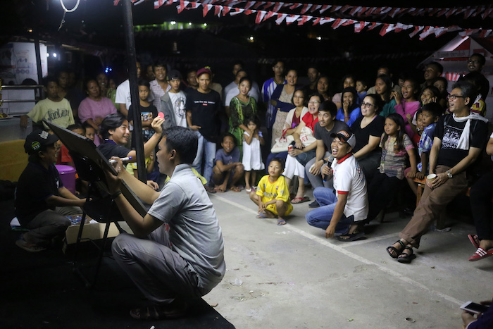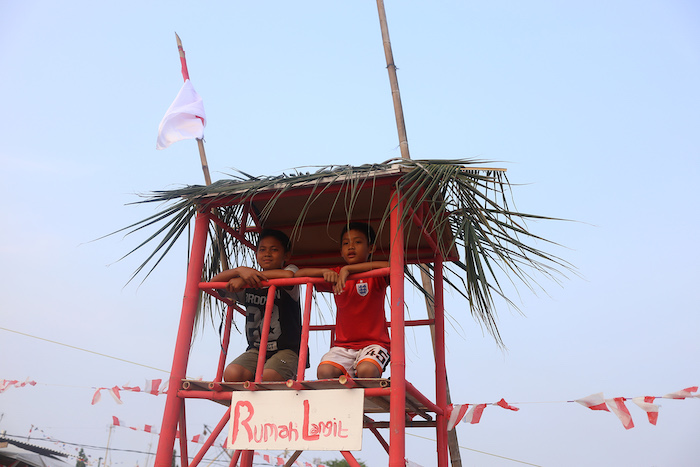 Целью моего проекта в кампонге Акуариум было задуматься о том, что именно делает дом идеальным. Многие из жителей кампонга отмечают День независимости Индонезии, организуют конкурсы, например состязания по поеданию на скорость. И пускай в Джакарте часто случаются политические конфликты, люди там любят повеселиться. Мне хотелось связать свое исследование политической ситуации с празднованием Дня независимости, так что я организовал новый конкурс. Получилось и развлечение, и художественный проект. Я ездил туда ежедневно на протяжении трех недель, и мы обсуждали буквально все. Жители собрали семь команд, каждая из которых создала модель воображаемого дома. Были «Дом на небесах», «Дом со сценой», «Складной дом»… «Дом на небесах» — мечта детей кампонга. По их словам, «если у нас будет дом на небе, никто не может прийти и разрушить его».
