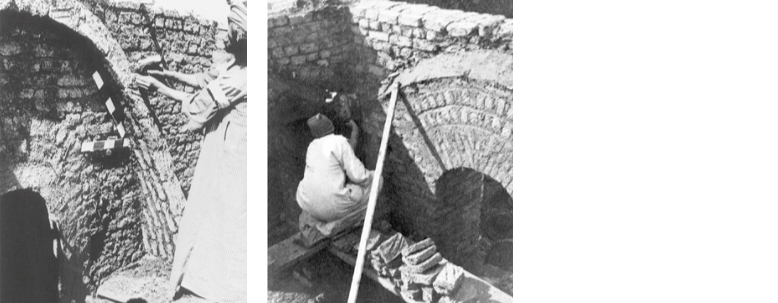 Толщина стены в пять рядов обожжённого кирпича составляет 60 сантиметров, что недостаточно для опоры купола или свода: ширина остальной части стены составляет 80 сантиметров. На 10-й ряд кладут слой цемента, заливают битумом и засыпают песком. Когда битум высыхает, кладут ещё два ряда.