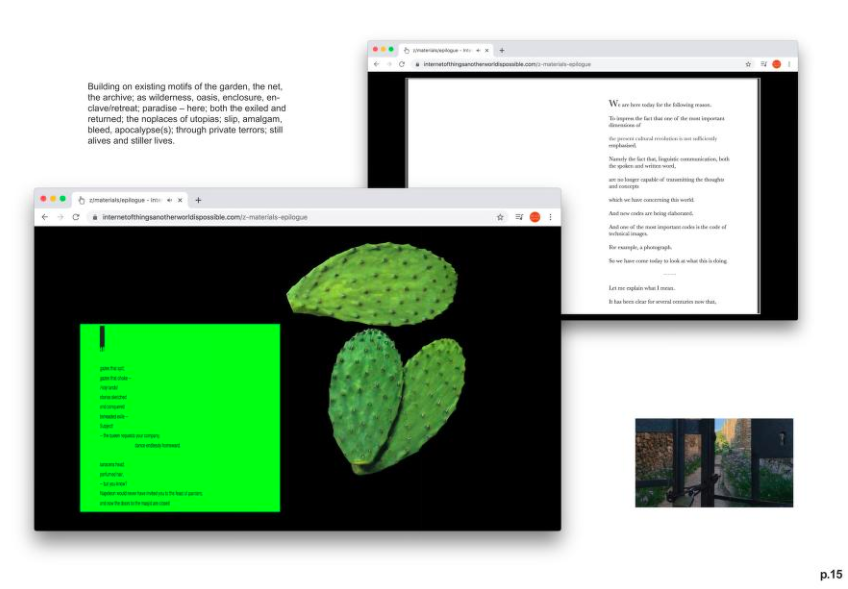Сборник, по мнению составителей, стал продолжением выставки и онлайн-экспериментом в художественных и кураторских практиках. Вошедшие в него текстовые и визуальные материалы обращаются к тем бедствиям, что порождаются господствующими структурами через системы насилия, и тому временному беспокойству, сохранению которого способствует цифровая среда. Помимо эссе участников резиденции, в сборнике был опубликован текст Эрена Иллери о лайв-стримах видеоигр как перформативных жестах, исследование Амани Абурахмы, деконструирующее понятие «некрополитики» Ахилла Мбембе, а также рассуждение Карима Эстефана о сопротивлении колонизирующему взгляду.