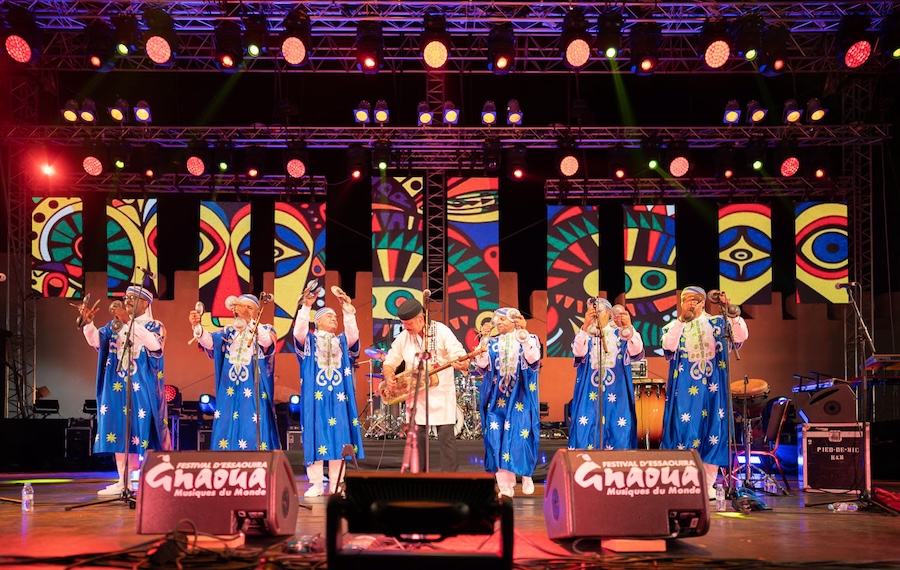 Крупнейший фестиваль гнауа, характерной в основном для Марокко духовной и танцевальной музыки. За счет своих уникальных композиционных правил, один трек в этом жанре может длиться несколько часов, в течение которых к его монотонно повторяющимся ритмам наслаивается всё больше звуковых элементов. А к исполнителям присоединяются другие музыканты из лайн-апа, чтобы завершить каждый сет жарким джемом. Международный фестиваль гнауа длится три дня с рассвета до глубокой ночи и привлекает несколько тысяч слушателей.