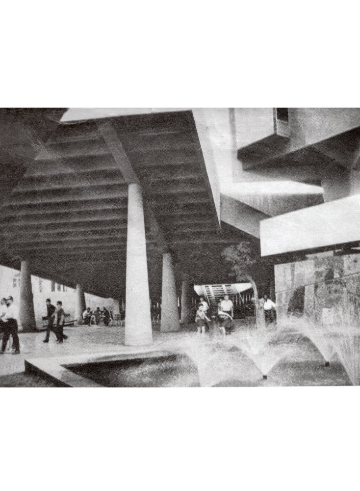 Открытый в 1974 году кинотеатр представлял собой многофункциональный комплекс, состоящий из трех частей: два архитектурных объема разного размера, но схожей формы, с нависающей над землей крышей, в которых поместились зрительные залы, а под ними — открытое пространство, где находятся кафе, бар и кассы. Интересно, что построен кинотеатр был на месте знаменитого исторического рынка и после приватизации в 2004 году снова превратился в место торговли.
