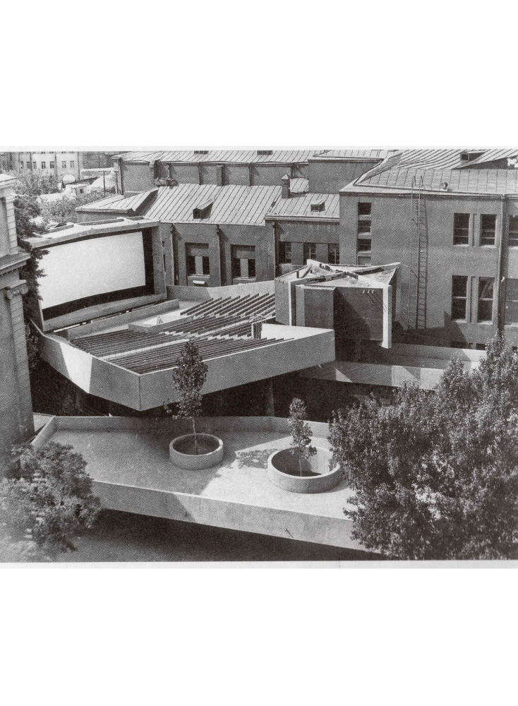 Это, должно быть, очевидный выбор, но если нас просят выбрать один объект, то первое, что приходит на ум, это летний зал кинотеатра «Москва». Мы чувствуем особую эмоциональную и профессиональную связь с этим местом. Для нас он воплощает оттепель шестидесятых с ее оптимизмом. К сожалению, нам, миллениалам, не довелось увидеть зал в его славные годы. Нам достались лишь распад, апатия и угроза сноса.