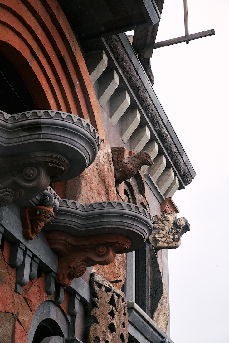Этот дом сразу узнается на проспект Исакова. Он не требует описаний, он сам — текст. Большой обаятельный текст на нескольких языках. Зависший между недостроем и заброшенностью, набитый деталями и незавершенностью, он содержит в себе отражение всех действующих сил армянской архитектуры. За свои свойства продвинутой ремесленности и теоретической наполненности мне и кажется этот дом важным для нашей коллекции.