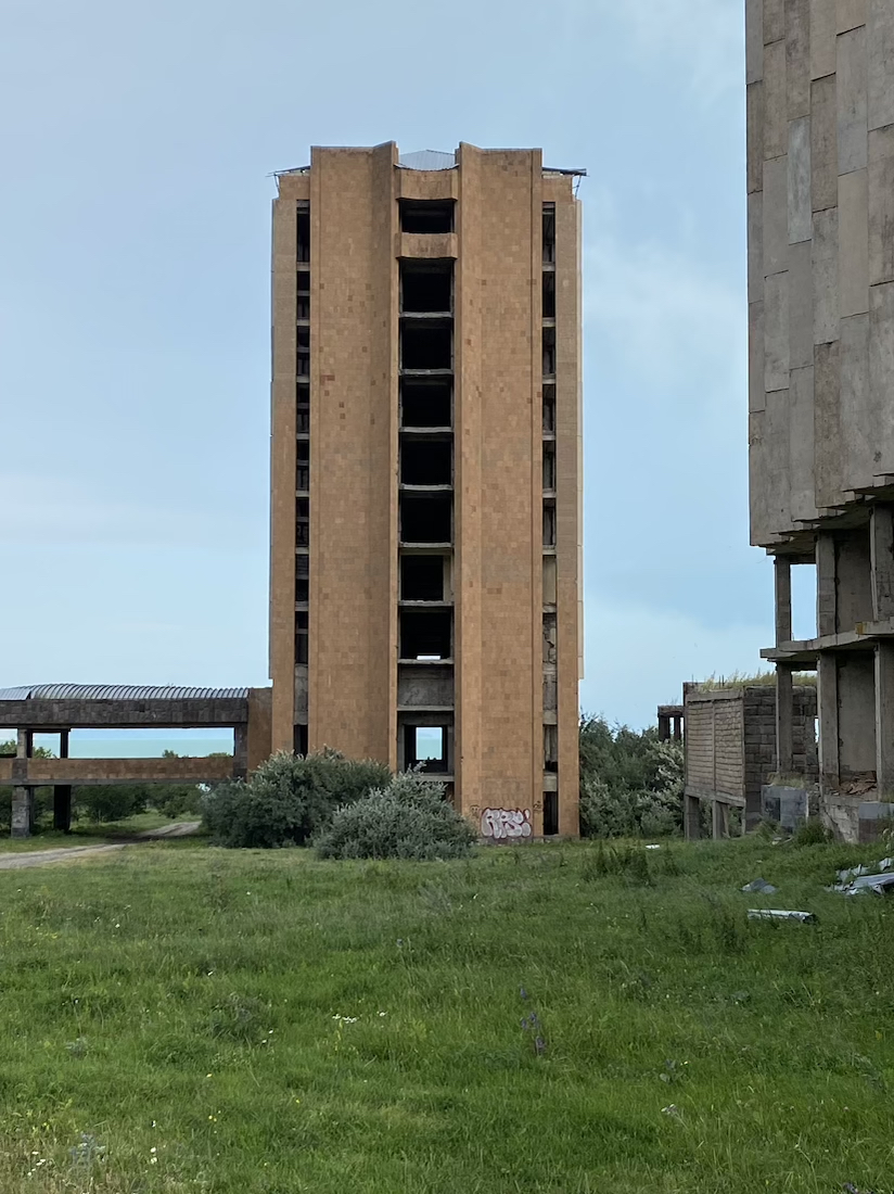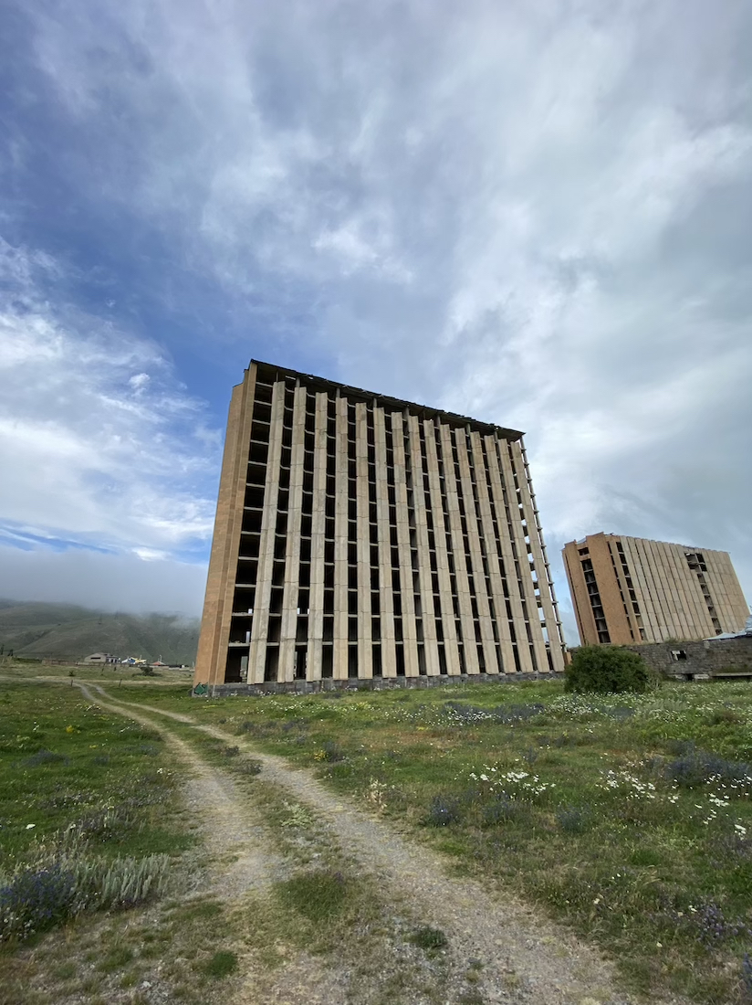 Нас привлекают не состоявшиеся архитектурные шедевры, но недостроенные здания с их увлекательным скрытым потенциалом. Архитектурные артефакты советской эпохи можно рассматривать не только как тяжкий груз давно ушедшей эпохи, но и попробовать переосмыслить их во что-то новое. Один из таких артефактов — недостроенный комплекс санатория «Советская Армения». Его простая геометрия эффективно работает под палящим солнцем, а декоративные элементы фасада создают лаконичный, но динамичный образ «пчелиных сот», нечто вроде «фабрики здоровья».