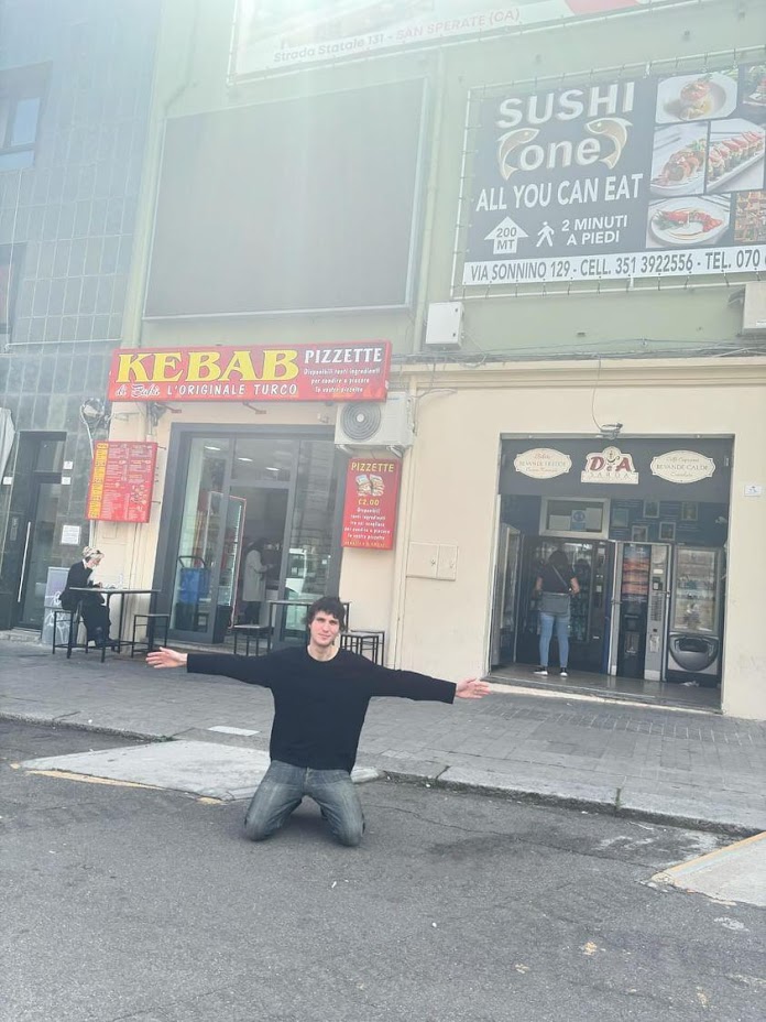 По прибытии произошло кое-что забавное — за это мои друзья на родине, учитывая знаменитую итальянскую кухню, уничтожили бы меня. Я начал «скрываться» в кебабной. Дело в том, я что заядлый любитель шаурмы; в Тбилиси я даже известен как «главный по шаурме». Поэтому, приехав в Кальяри, я почти сразу же нашел утешение в ближайшей кебабной Baba Kebab, расположенной в пяти минутах от моего дома на углу площади Гарибальди.