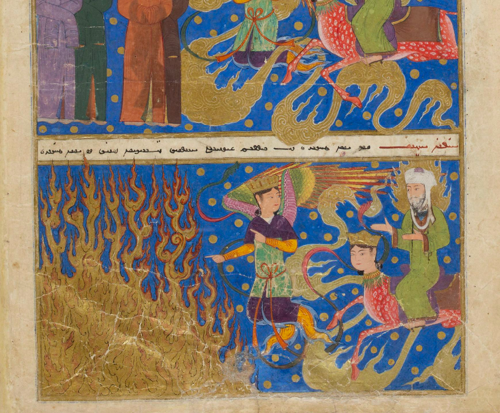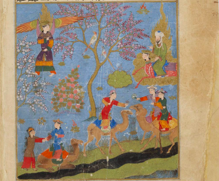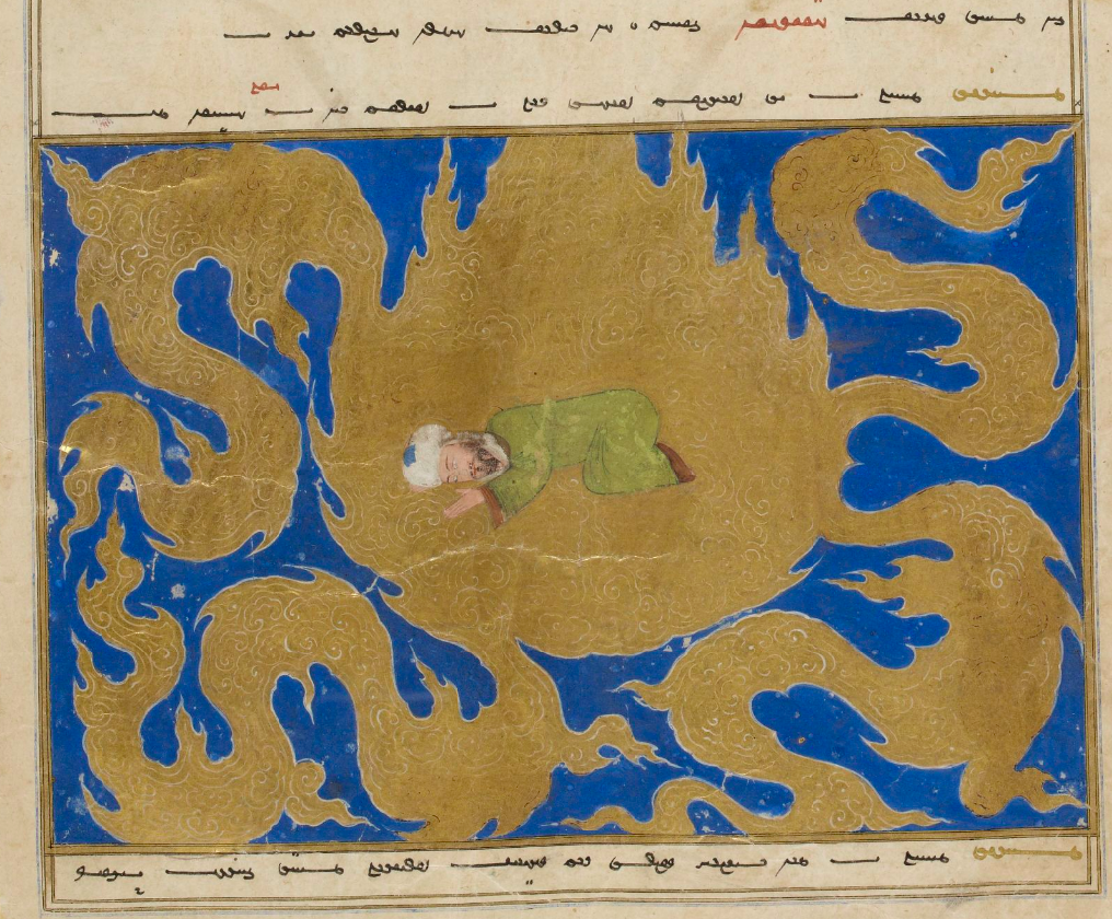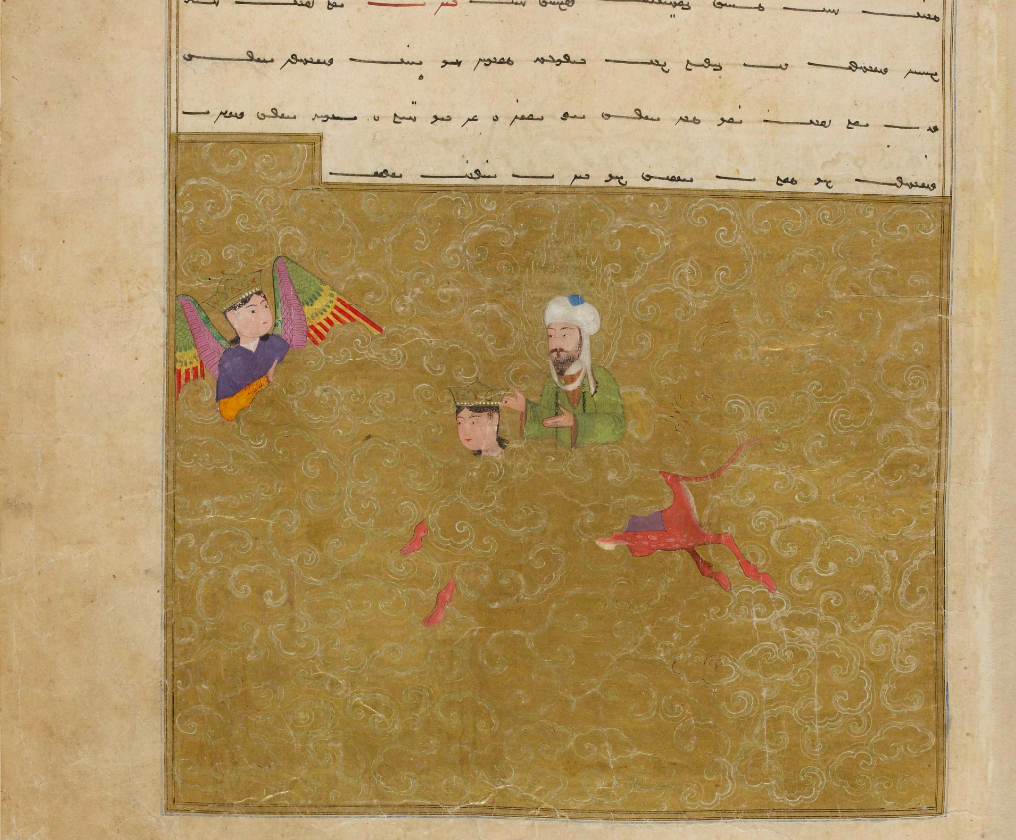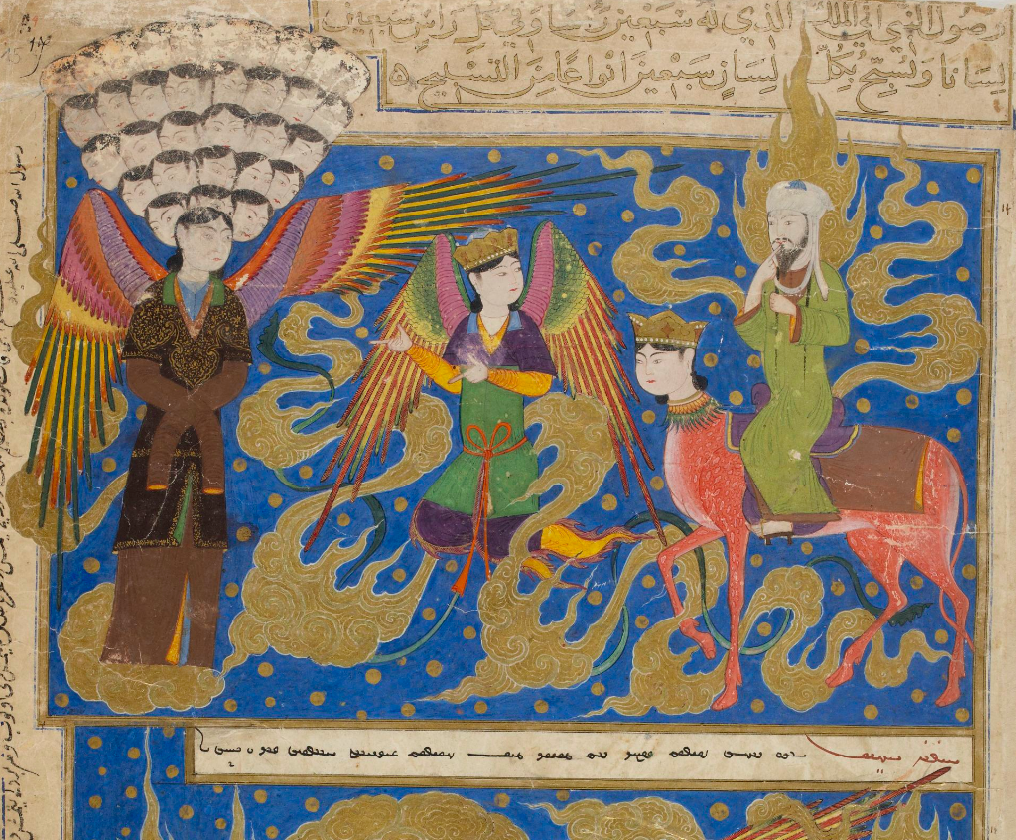 В ночь 27-го числа месяца Раджаб ангел Джибриль разбудил пророка Мухаммеда и отправил его в ночное путешествие (Исра) в Иерусалим с последующим вознесением (Мирадж) на небеса, где пророк встретил других пророков, ангелов и Аллаха, а затем посетил ад. Эта история вдохновляла исламских писателей и художников на протяжении веков и, возможно, наиболее ярко была запечатлена в 1436–1437 годах, когда младший сын Тимура (Тамерлана), Шахрух, возглавивший империю Тимуридовимперию ТимуридовВ период расцвета эта империя, основанная Тимуром, включала современный Иран, Кавказ, Месопотамию, Афганистан, большую часть Средней Азии, а также части современного Пакистана и Сирии. после смерти отца и недолгой междоусобной войны, заказал иллюстрированную «Книгу Вознесения» (Мираджнаме). К концу XV — началу XVI века изготовленная в Герате (город на территории современного Афганистана) рукопись оказалась в Стамбуле в библиотеке дворца Топкапы, а в 1672 году за скромные 25 пиастров ее приобрел Антуан ГалландАнтуан ГалландChristiane Gruber, The Timurid Book of Ascension (Miʿrājnama): A Study of Text and Image in a Pan-Asian Context, Valencia, Spain, 2008.