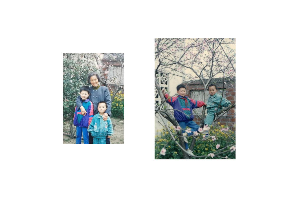 ШХ:Сохранились, но очень мало. Скорее всего, они в том доме и лежат. Раньше, когда я приезжал куда-нибудь, люди вытаскивали старые альбомы и мы все вместе их смотрели, а сейчас такой привычки больше нет. Вот, например, фото в нашем дворе — это моя бому. Вот все три поколения семьи. И дерево, о котором я говорил, кстати. А это мой бофу — он уже ничего не знает об этом мире. Они уже не очень могут двигаться, поэтому второй этаж почти заброшен: на инвалидной коляске не разгуляешься. Все остальные, кроме них, разъехались: кто в Шанхай, кто в Нанкин. А это сестра, она живет неподалеку и приезжает чаще, чем остальные.