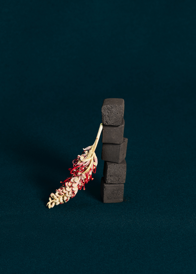 Thin plates, a scattering of splinters or a small dark-coloured woody brick, that are placed over hot coals are soaked in aromatic oils. The list of oils and ingredients is different for every producer, with frankincense, sandalwood, patchouli, and musk being among the most commonly used. Traditionally, to make the base of bakhoor, manufacturers use oud—the oily heartwood of lign-aloes (also called agarwood or aloeswood), procured in the tropical forests of central Asia, where this sort of tree not only grows, but is susceptible to contamination by a certain fungus. The areas of wood affected by the mold, reacting to it for decades, are, in fact, what becomes oud. The dark, heavy inclusions in agarwood grow in price with the age of the tree that has infused them with its resins. The count can reach centuries.