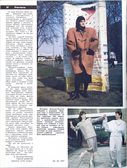 BRUNO BIRMANIS:The fashion scene in Riga was similar to all the fashion scenes in the Soviet Union. In the early eighties the regime was still strong and designers who worked in the industry had little space for creativity. A few underground events were happening, like in every big city, but the big waves that started shaking the system arrived only in the second half of the decade. I think there are three main ways to tame people’s minds. The first is religion, the second is education, and the third and the most powerful one is money. At the end of the eighties all these three stopped working and this is how it became possible to organize a public event like the Untamed Fashion Assembly. I don’t like the term avant-garde because it sounds like the frontline or the harbinger of a trend. If we use a much better word like alternative, we arrive at the question “Alternative for what?” I think the Assembly provided an alternative not only for fashion, but for the whole Soviet ideology that was about to crash during that time.
