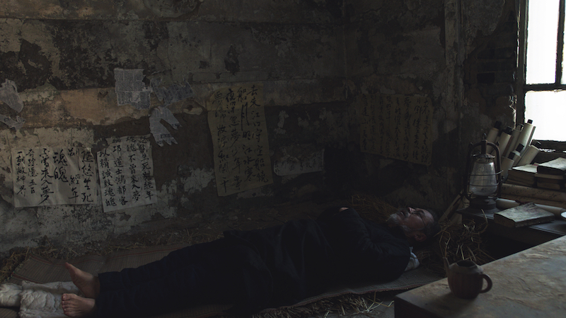 Another important narrative of Tungus is the story of intellectuals. The whole Northeast Tetralogy has one important hidden layer, which is the question: how do we, Chinese people, reflect on the May Fourth Movement of 1919, the New Democracy Movement? How do we consider the country’s changes over the past one hundred and two years? The young students in white clothes that you can see in the film are part of these events. You can also see an elderly intellectual in black, based on the late Ming Dynasty philosopher Li Zhi—he travels to 1919 and sees the students that he used to fight with before. Everything that appears in the film ends up being his illusion, it’s only him who is real. He was lying in his bed the entire time, too hungry to move. Everything that was happening was a hallucination caused by starvation. In this hallucination, he has a choice to end it all, to kill himself by hanging. The very moment of his suicide in the hallucination is the moment of his real death from starvation.