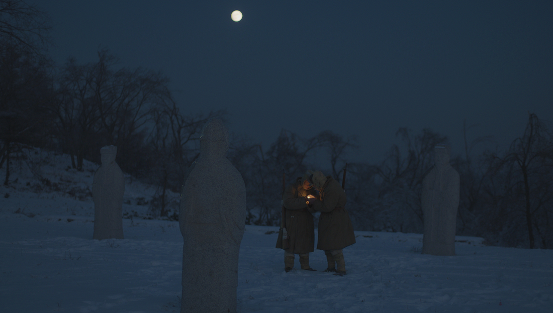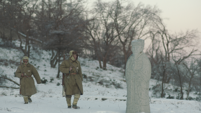 In the film, you can see two Korean soldiers. In some archives, I found the information that the CPC was not even using the Chinese army at those main blockade points. One speculation about this strategy is that Chinese soldiers wouldn’t be able to watch their own people starve and wouldn’t be able to carry out the operation, so they used a foreign army. The soldiers in Tungus belong to the Korean Independent Division. They are trying to flee Changchun. Around the same time, in 1948, there was a parallel history unfolding in Korea—the Jeju uprisingJeju uprisingDuring the Jeju uprising that lasted from April 1948 to May 1948, residents of Jeju Island were protesting against the division of Korea. Between 14,000 and 30,000 islanders were killed and another 40,000 fled to Japan.. There was basically the same thing taking place, the civil war, during which many citizens were killed. It was only in 2000 that the South Korean government released the archives that deal with this incident and gave people a chance to talk about it in public. The two Korean soldiers in the film are from Jeju island—that’s why they want to flee the city of Changchun. It is not really that far from their hometown, so they are trying to go back and try to save their families. But eventually, they find out that they cannot get out—it’s as if they were in a maze. That’s because the consciousness of the countless starving people transformed the geology, it transformed space and time.