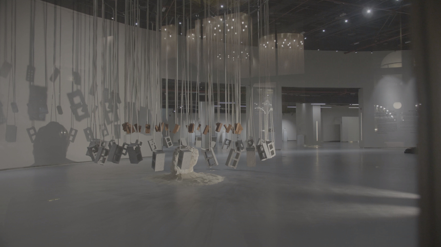 Центральная инсталляция образует два круга и символизирует два десятилетия непрерывного и стремительно ускоряющегося строительства в нашей стране. Камень и песок отсылают к старым постройкам, которые когда-то мастерили из этих простых материалов, смешивая их с гипсовым порошком. В то же время они символизируют традицию, исторические корни и культуру — все, что формирует нашу идентичность. Я задействовала веревки, исходя из того значения, которое они когда-то имели: их использовали в строительстве, в судоходстве, во время добычи жемчуга и в пустыне при установке шатров. Это важный инструмент, которым я связала прочие элементы, чтобы показать, как можно сплетать прошлое с настоящим, создавая современность, — столь важный для Катара и Дохи контекст. Ускорение темпов строительства меня не тревожит, ведь оно всегда приносит немалую пользу, однако из-за быстрых перемен многие вещи теряются, а мы этого не замечаем — или замечаем, но поздно, когда от этих вещей почти ничего не остается. Население Катара относительно невелико, и перемены затрагивают значительную его часть быстрее, чем это происходит в других странах. В МушайрибеМушайрибеОдин из старейших районов Дохи. есть дома, которые поддерживаются в неизменном состоянии, что критически важно для нашей культуры и непрерывной связи времен. В одном из них, доме Радвани, где проживала одна из катарских семей, теперь располагается небольшой музей.