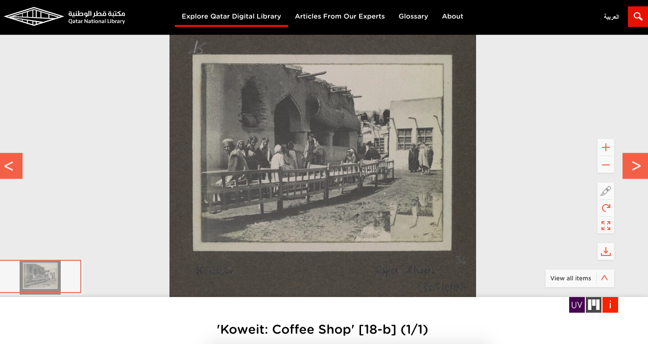 Учреждение основала шейха Моза в партнерстве с Британской библиотекой. Цифровой библиотекой Катара занимается междисциплинарная команда экспертов, в которую вхожу и я. Моя задача — подбирать материалы для фондов как из коллекций Британской библиотеки, так и из других архивов со всего мира. С 2017 года мы находимся в постоянном поиске новых партнеров, которые могли бы предоставить нам материалы на разных языках, предлагающие разные точки зрения на историю и культурное наследие Катара и всего региона Персидского залива, включая Аравийский полуостров, Иран и Ирак. Мы присматриваемся к Индии, Турции, Португалии, Франции, равно как и к разнообразным архивам Великобритании, а с недавнего времени и России. Например, мы подписали соглашение о намерениях с Кунсткамерой, старейшим российским музеем, а также с Петербургским музеем исламской культуры, в распоряжении которого находятся крупнейшие коллекции фотографий с Ближнего Востока и из исламского мира, в том числе небольшая, но важная коллекция, посвященная региону Персидского залива и Ирану.