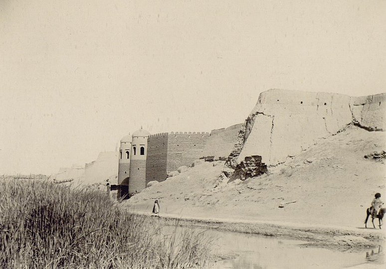 Снизу: Стена из сырцового кирпича стены в Термезе. Узбекистан, 1930–1931 годы