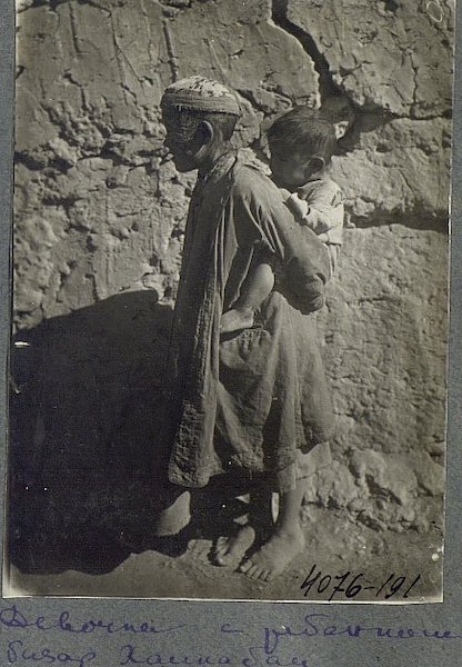 Справа: Девочка, несущая ребенка. Каракалпакстан, первая треть ХХ века